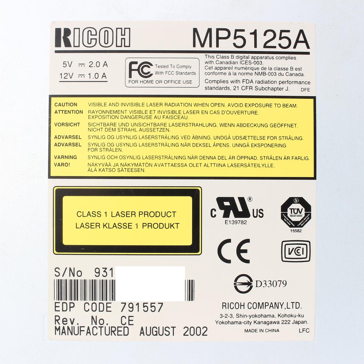 RICOH|MP5125A|DVD+RW/+Rドライブ|内蔵|SATA|リコー|230157