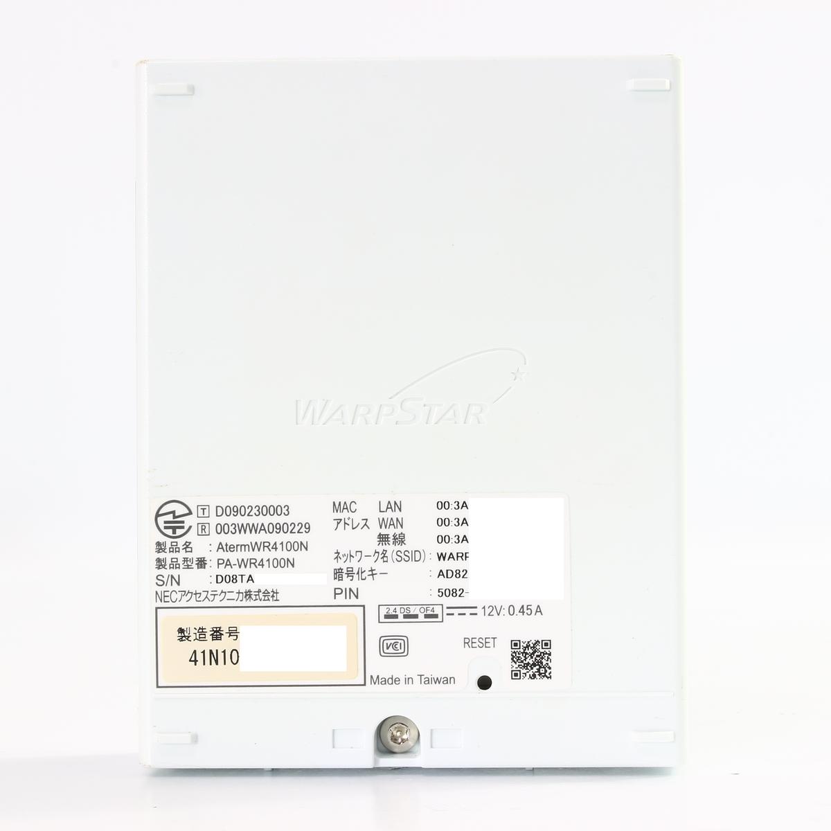 NEC|Aterm WR4100N|PA-WR4100N|WARP STAR|無線LANルーター|Wi-Fi|230504