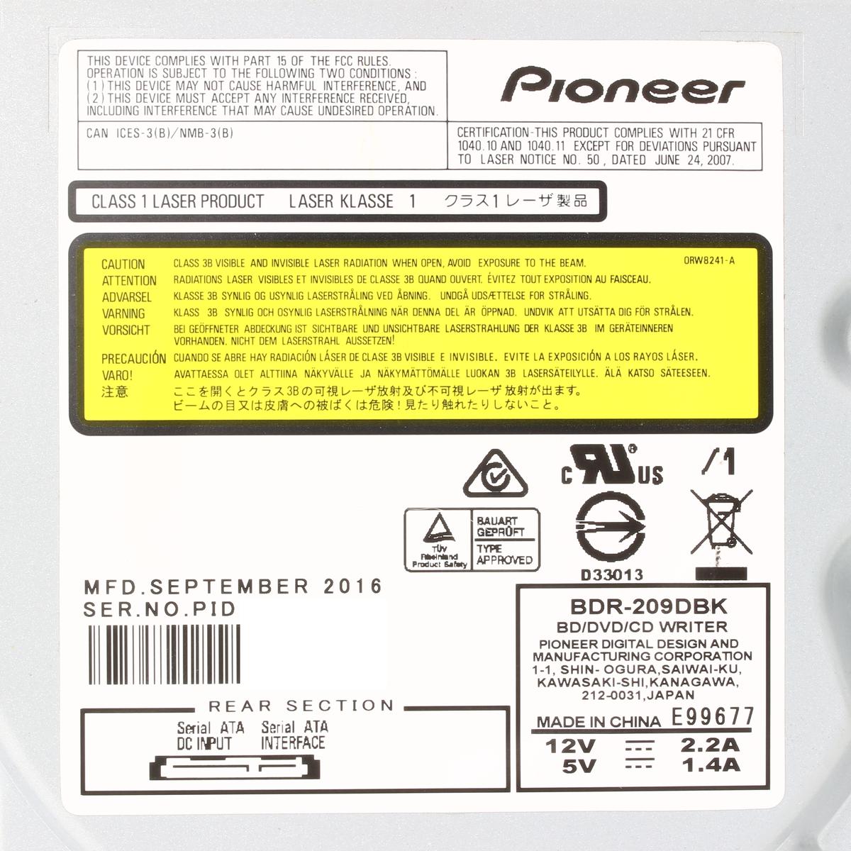 Pioneer|BDR-209DBK|Blu-rayドライブ|内蔵|SATA|ブラックベゼル|ブルーレイ|パイオニア|240048