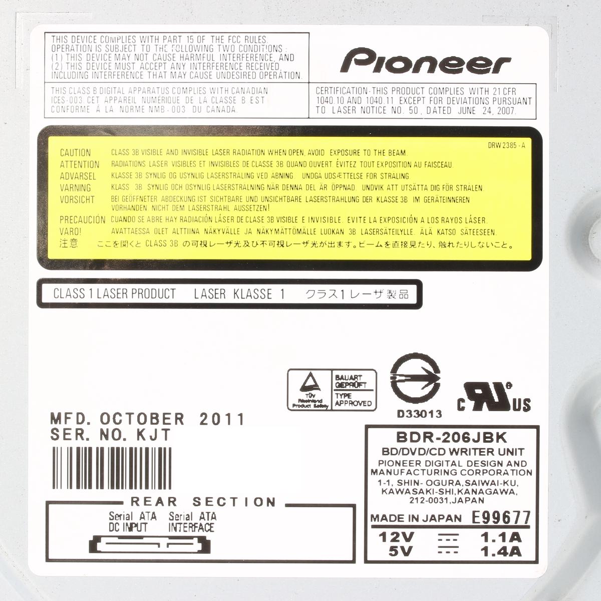 Pioneer|BDR-206JBK|Blu-rayドライブ|内蔵|SATA|ブラックベゼル|ブルーレイ|パイオニア|240049