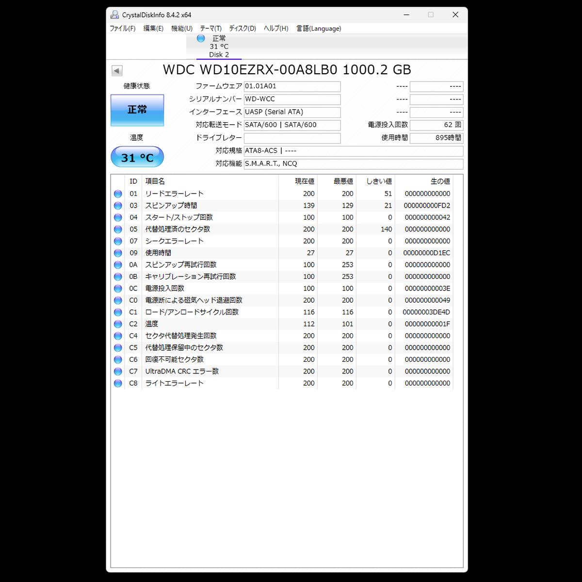 USB変換アダプタを使用している為、CrystalDiskInfoの情報の正確性まではわかりかねます。