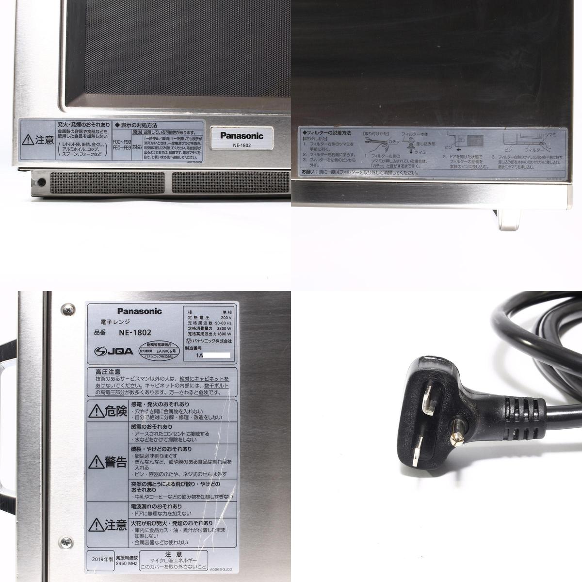 Panasonic|NE-1802|単相200V|業務用電子レンジ|1,800W|50-60Hz共用|スタンダードタイプPROシリーズ|2019年製|パナソニック|250019