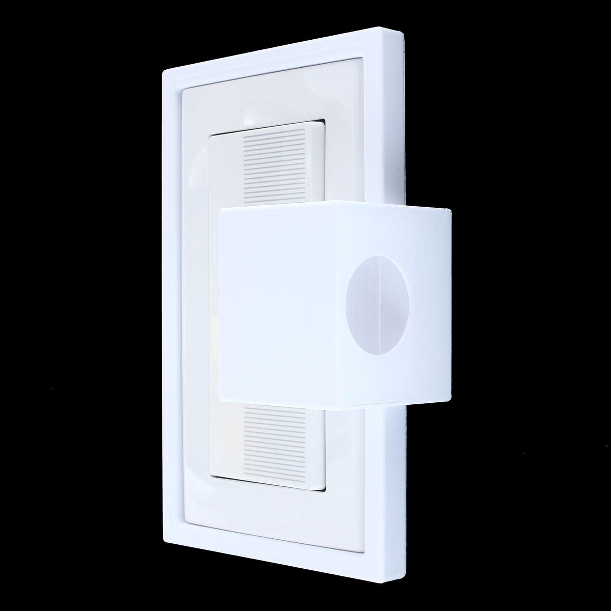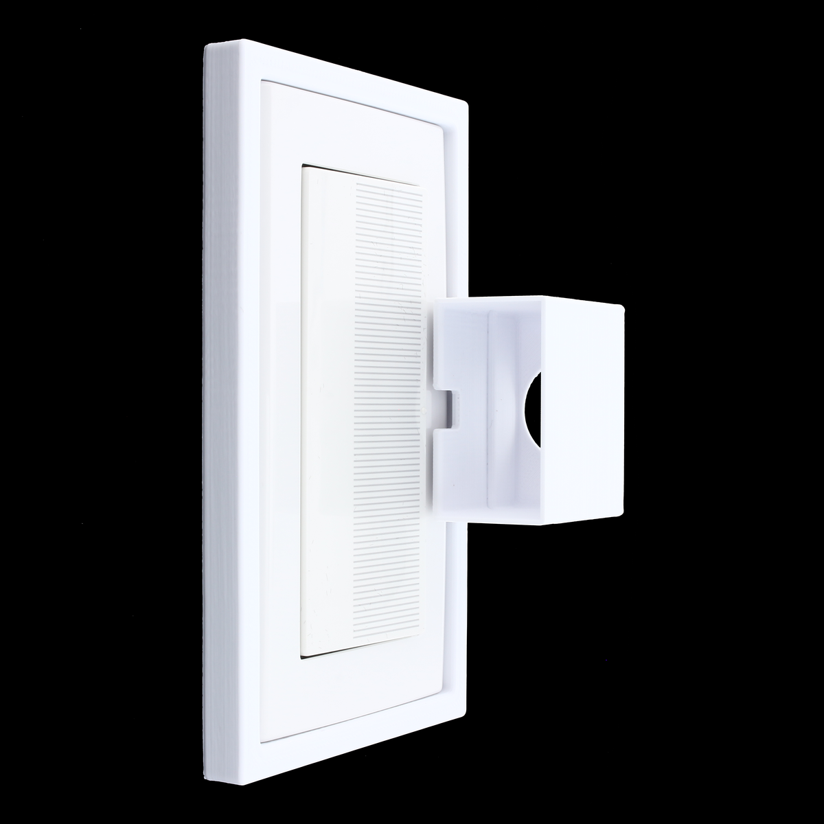 SwitchFrameはソケット部分と壁のスイッチカバーに取り付ける枠部分から成り、接着剤で固定し一体化しております。