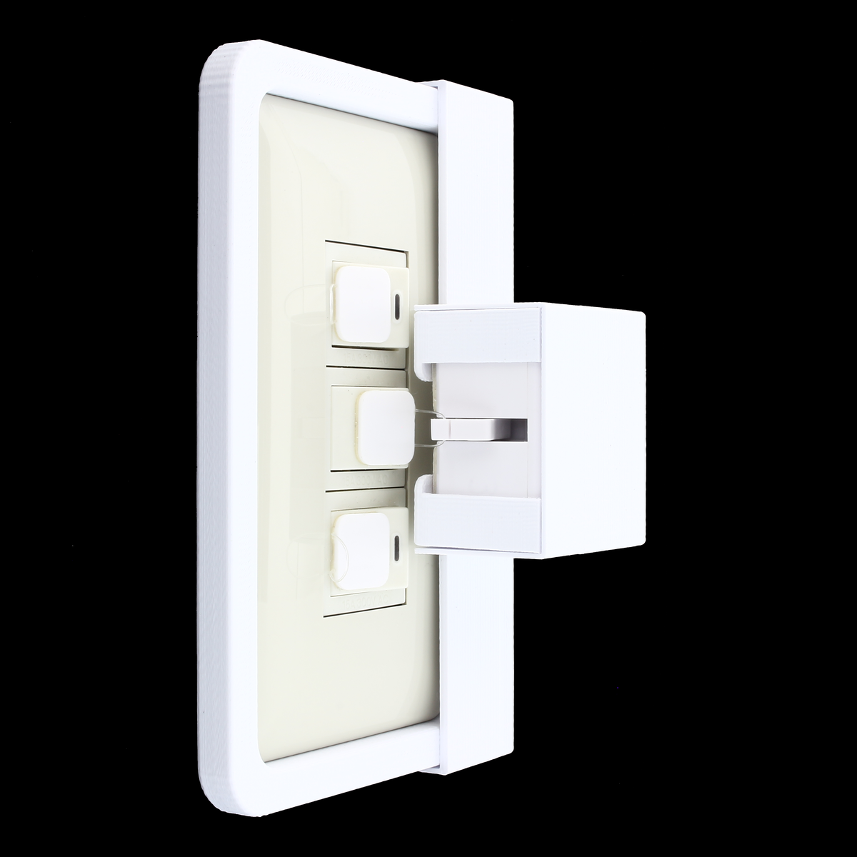 SwitchFrameはソケット部分と壁のスイッチカバーに取り付ける枠部分から成り、接着剤で固定し一体化しております。