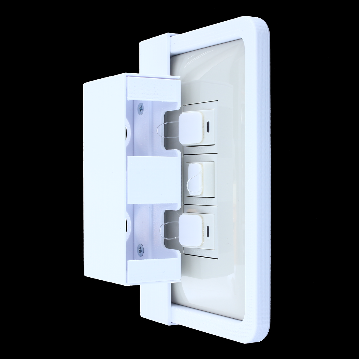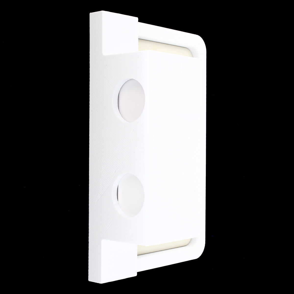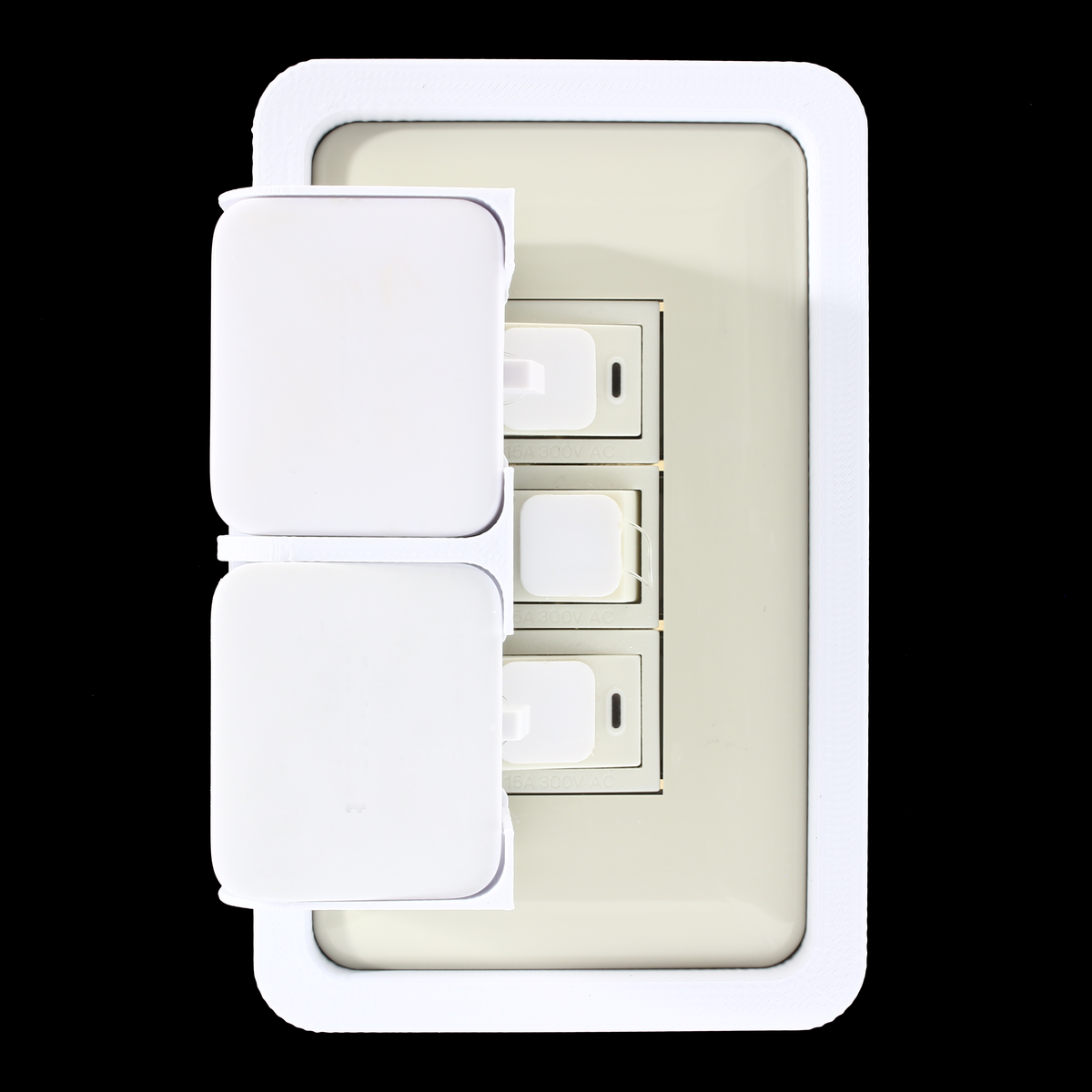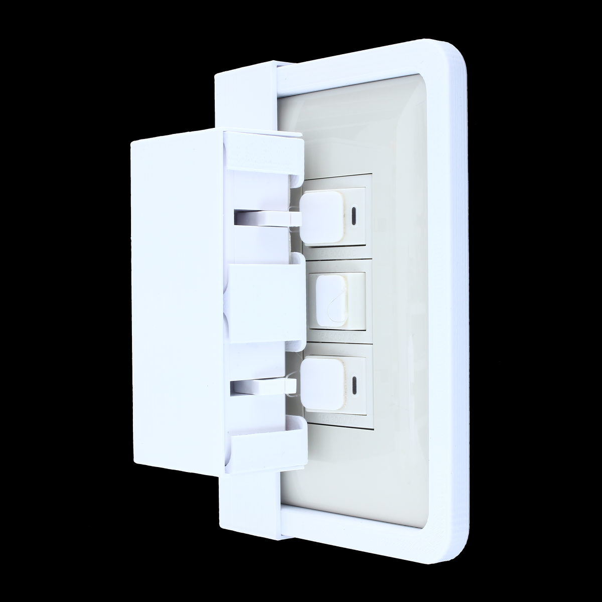 SwitchFrameはソケット部分と壁のスイッチカバーに取り付ける枠部分から成り、接着剤で固定し一体化しております。