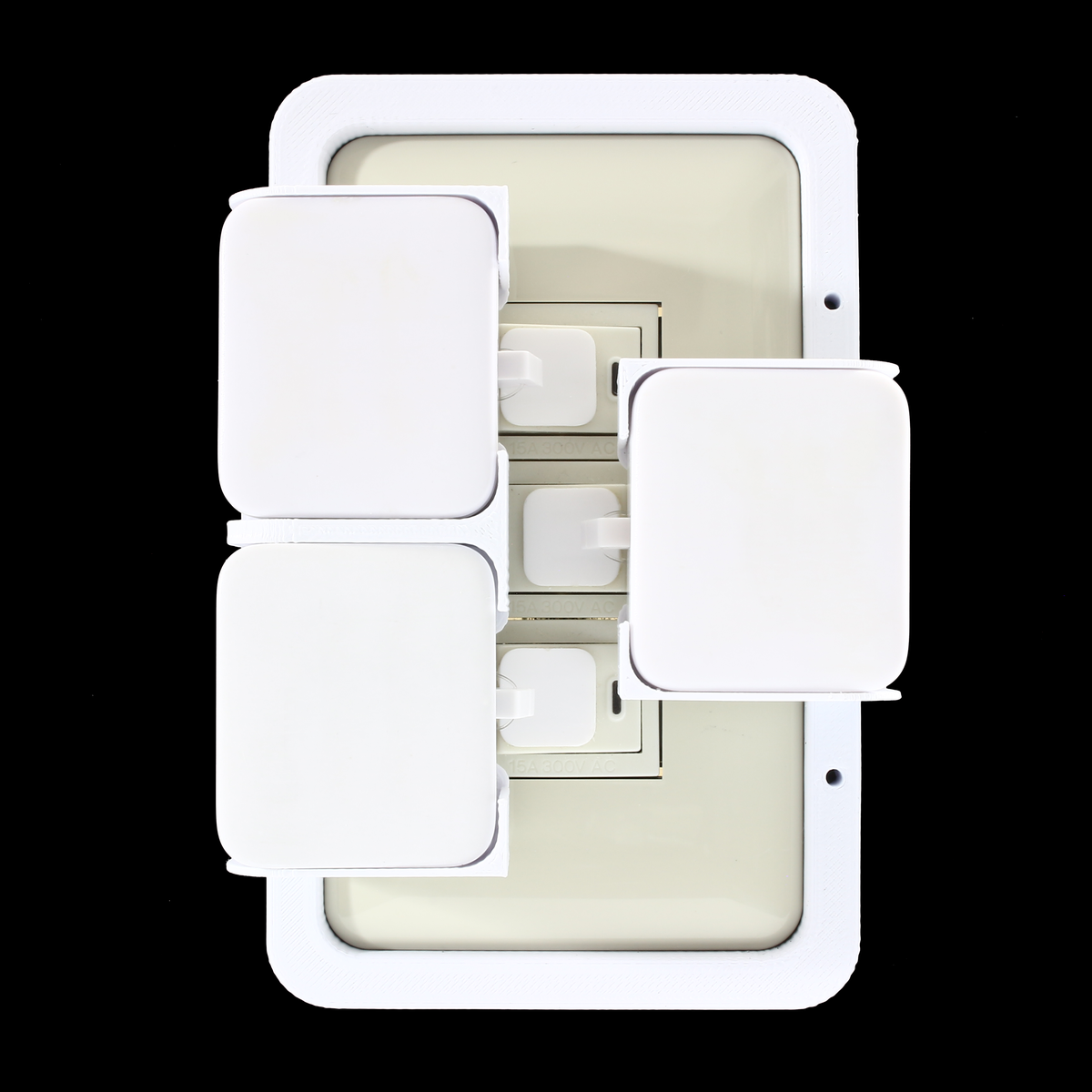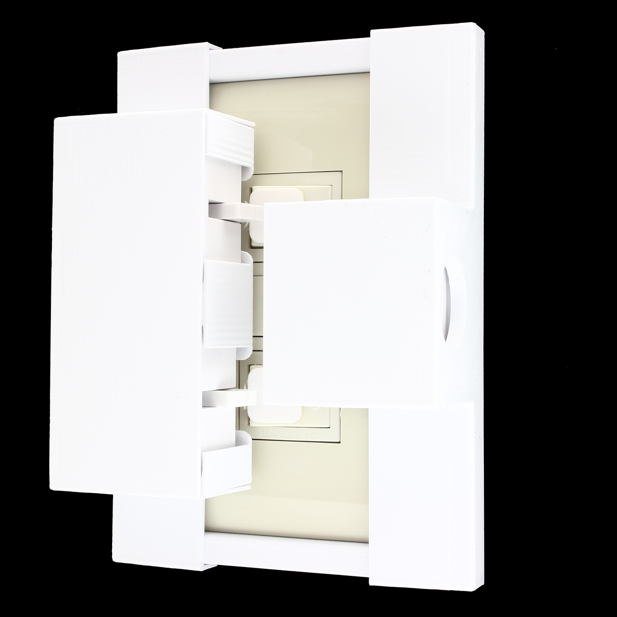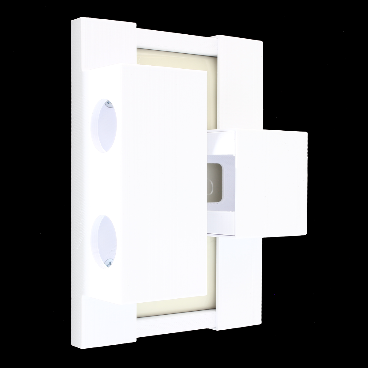 SwitchFrameはソケット部分と壁のスイッチカバーに取り付ける枠部分から成り、接着剤で固定し一体化しております。