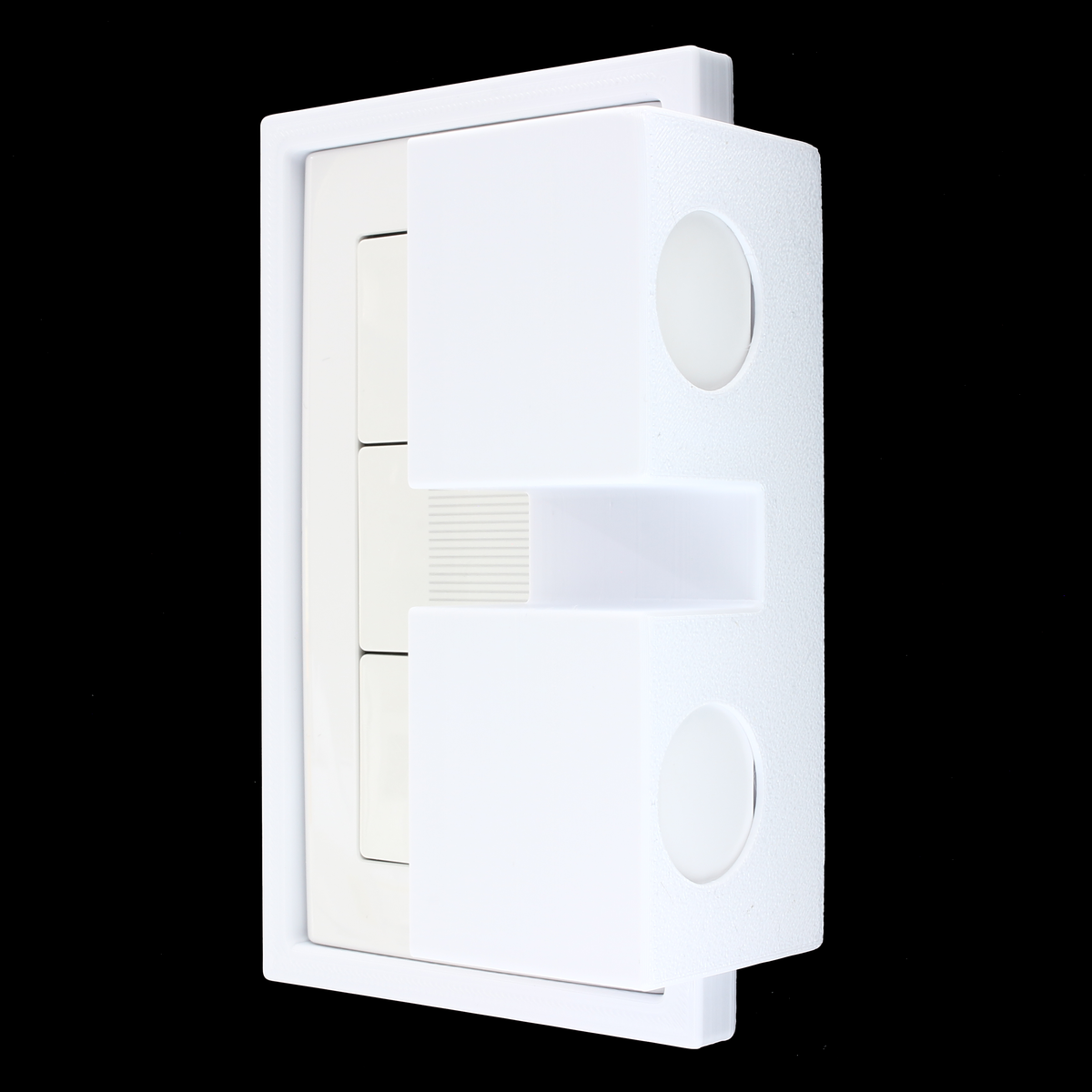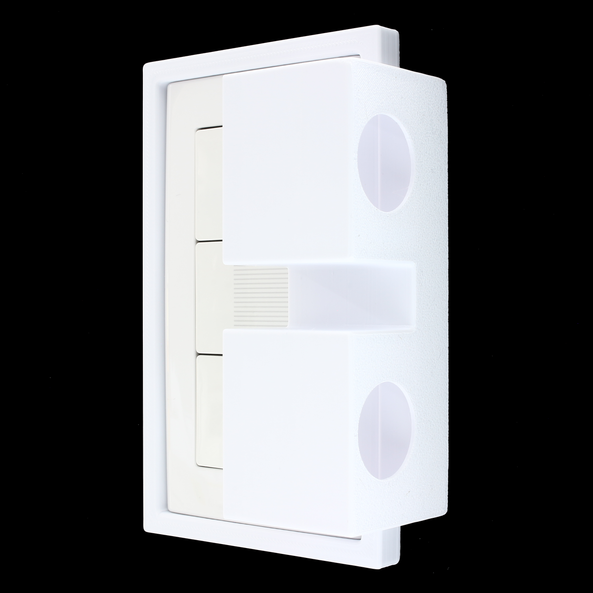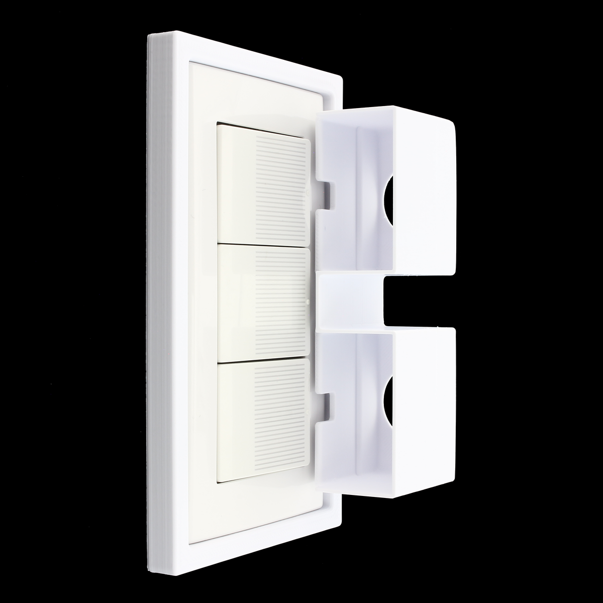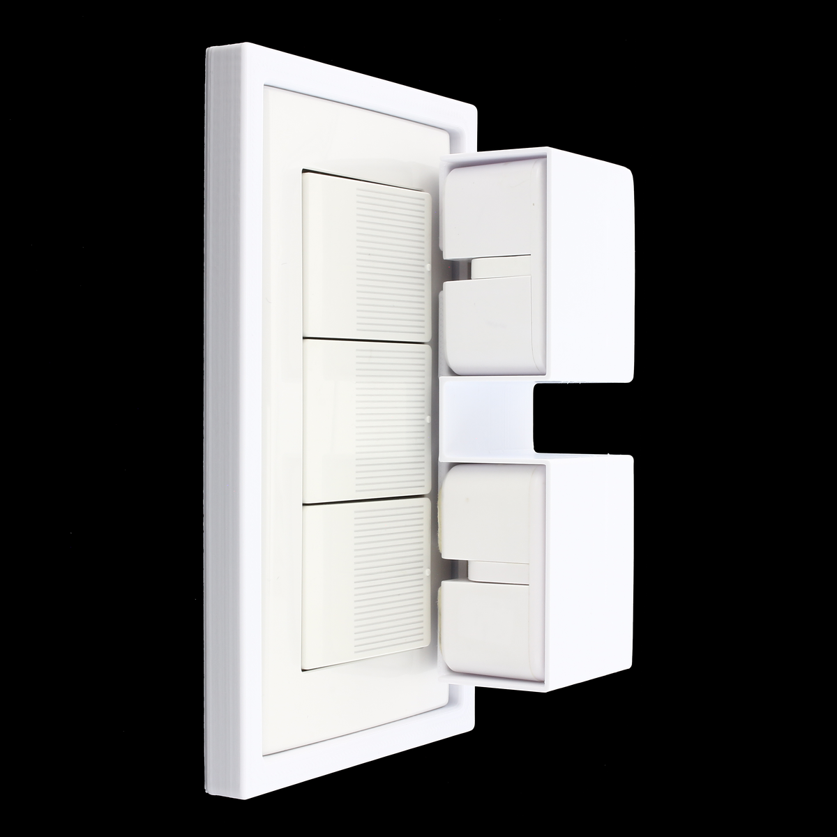 SwitchFrameはソケット部分と壁のスイッチカバーに取り付ける枠部分から成り、接着剤で固定し一体化しております。
